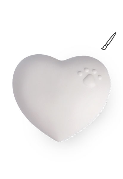 Die Keramikurne Herz LM100-01 ist mit einem kleinen Pfotenrelief versehen.