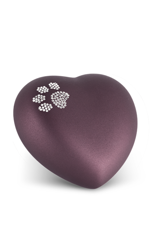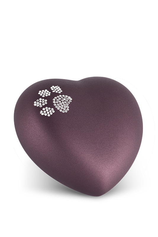 Keramikurne in Herzform mit Swarovski-Pfote (in 2 Größen / 10 Farben erhältlich)