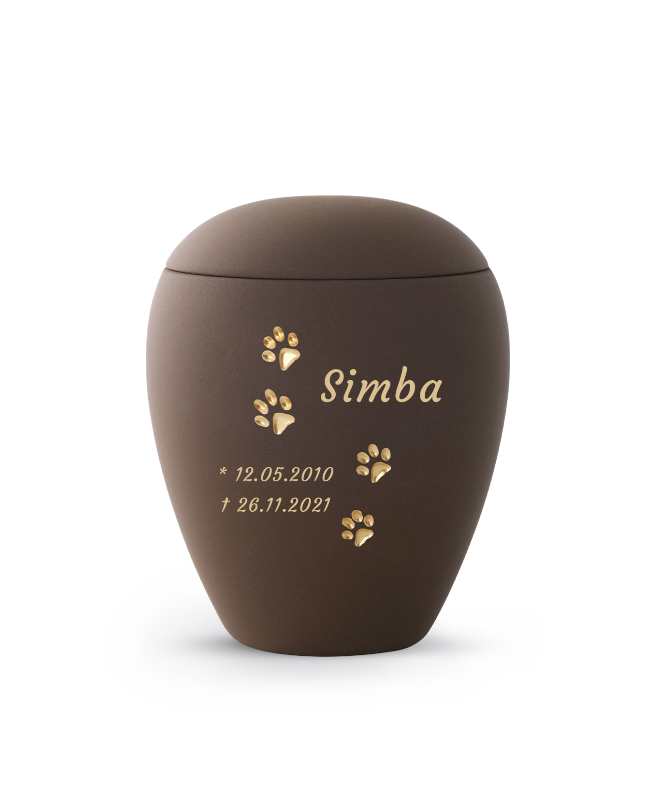 Verleihen Sie der Urne Ihres Tieres durch eine Lasergravur Individualität. Auch Symbole, wie zB. Herzen oder Pfoten, sind auf Anfrage möglich – wir beraten Sie gerne.