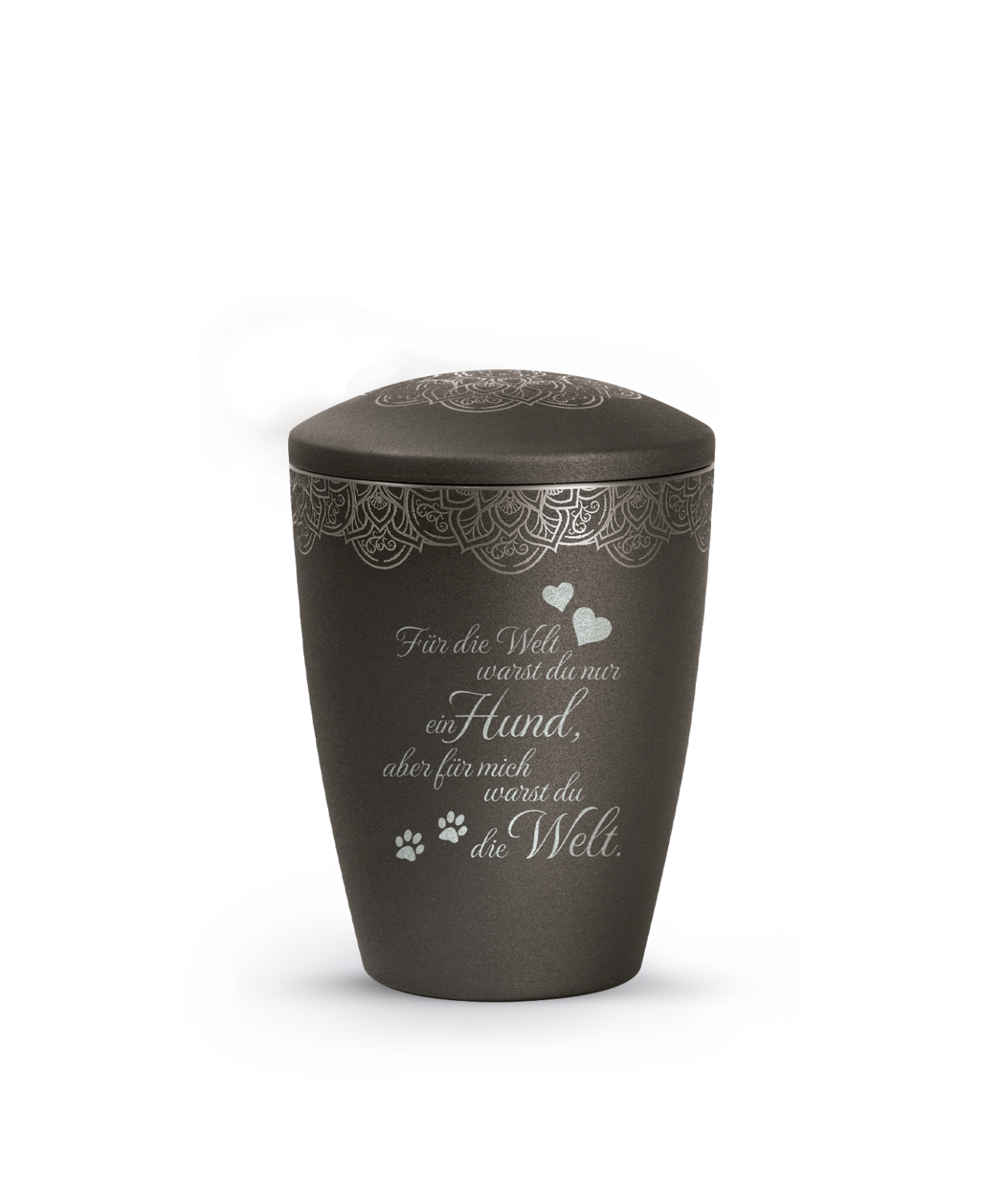 Verleihen Sie der Urne Ihres Tieres durch einen Lasergravur-Text Individualität. Wählen Sie zwischen 4 Texten – wir beraten Sie gerne.