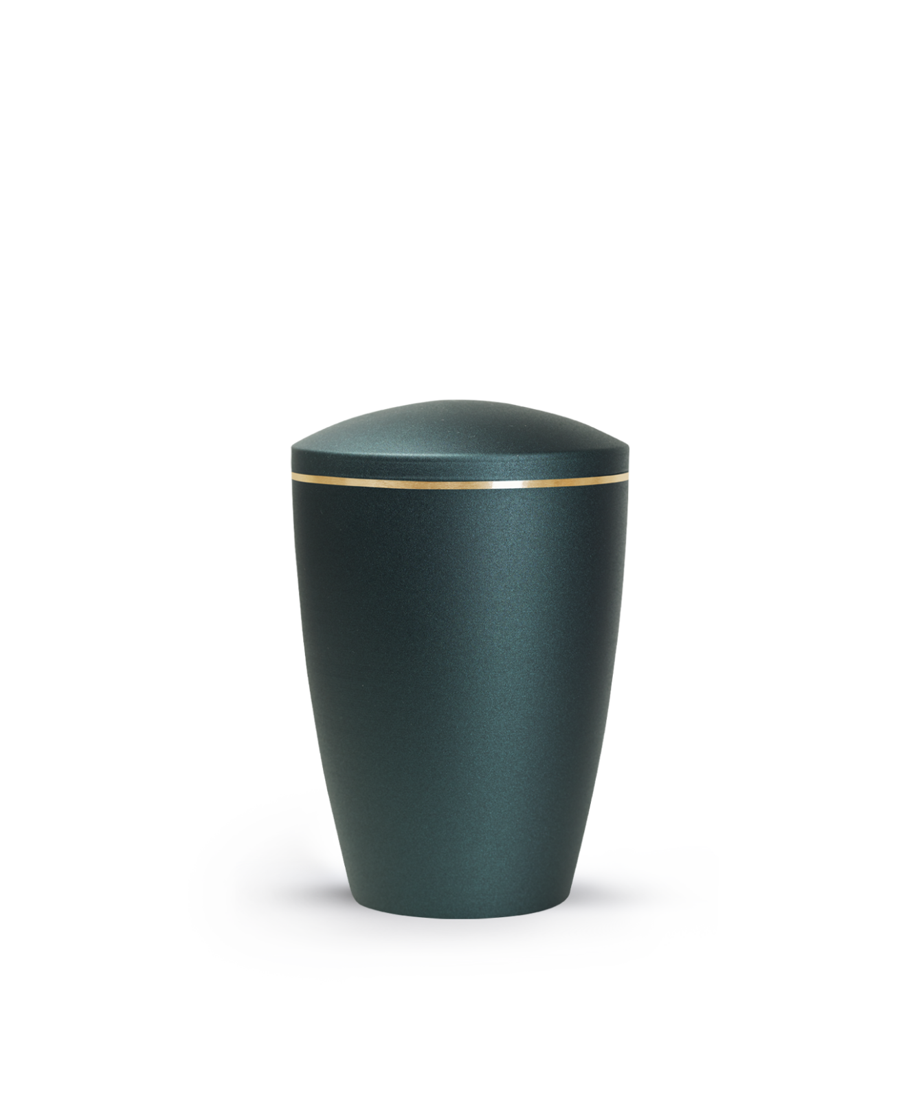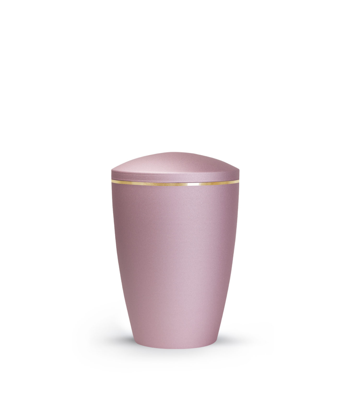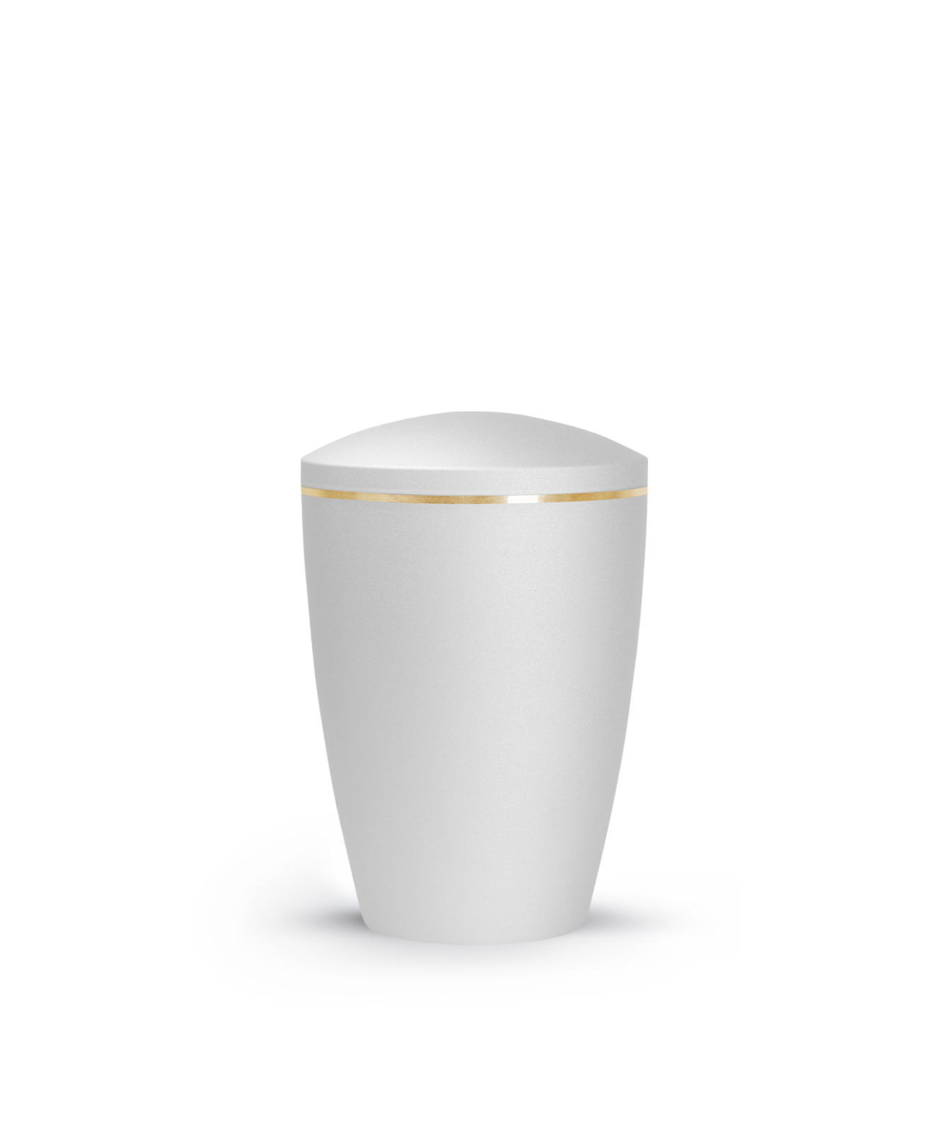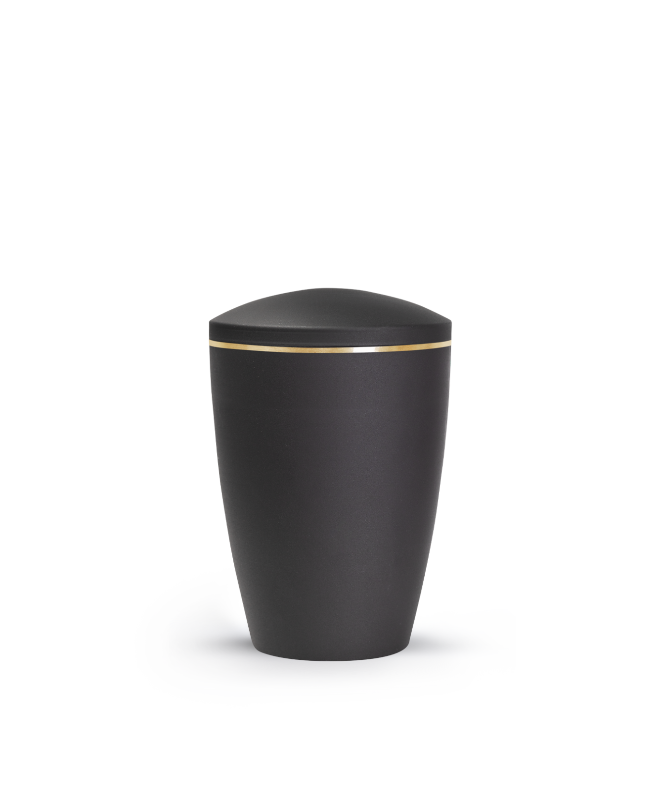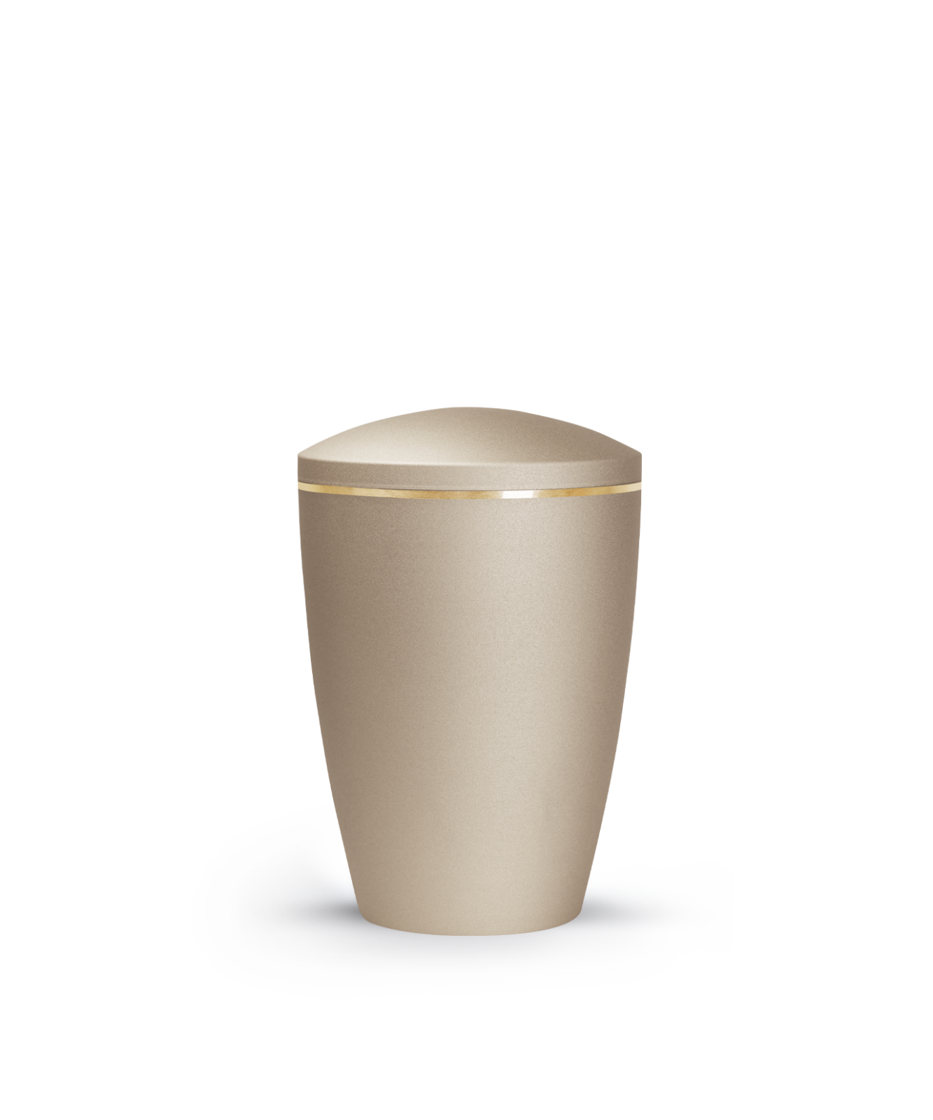 Die matt schimmernden Urnen der Edition Lina strahlen eine schlichte Schönheit aus. Verziert werden sie mit einem schmalen umlaufenden gebürsteten Goldband.
