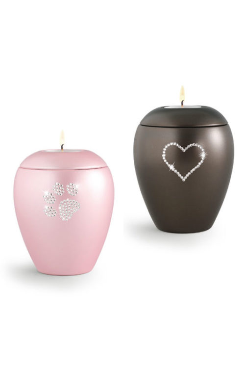 Entzünden Sie, immer wenn Ihnen danach ist, eine kleine Kerze auf der Urne Ihres Vierbeiners und sehen Sie, wie die schimmernde Oberfläche der Urne und die liebevoll aufgebrachten Swarovski-Kristalle im Kerzenlicht strahlen.