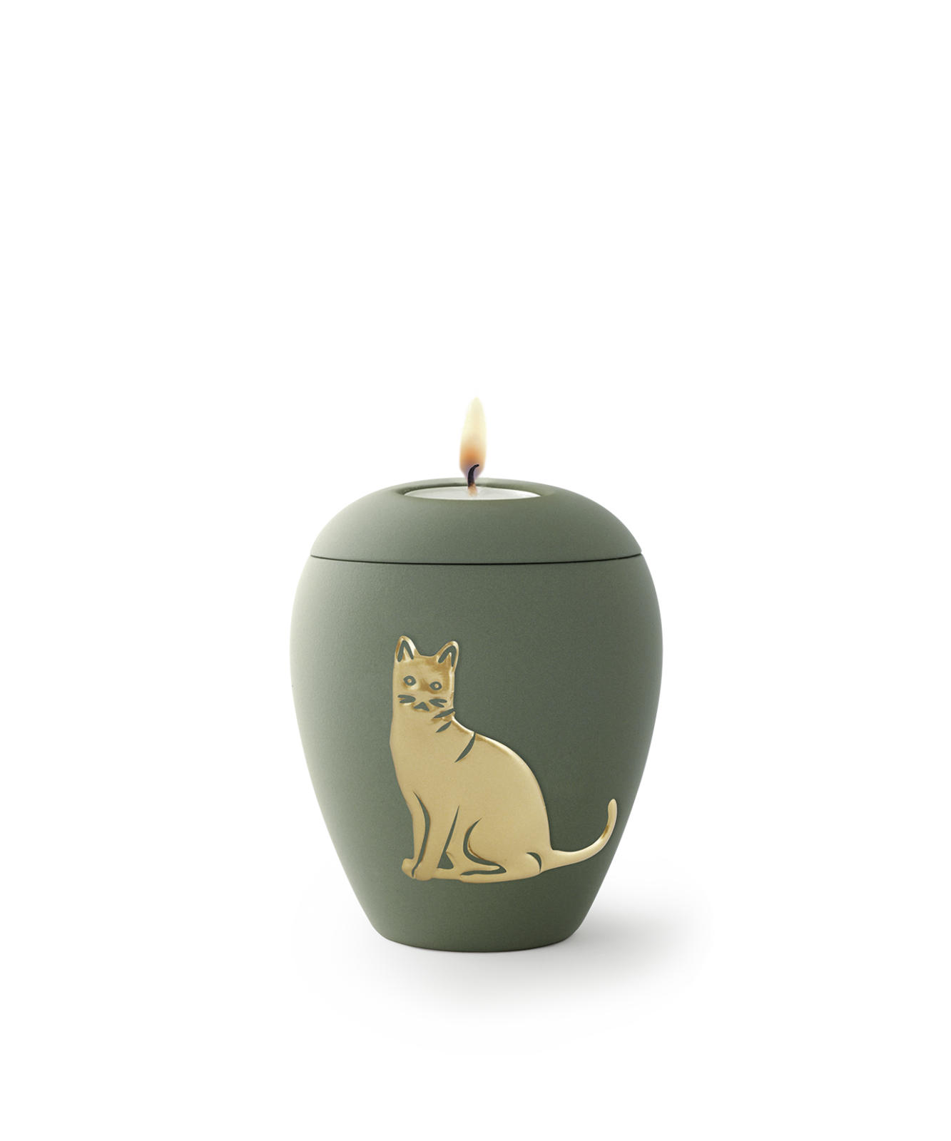 Das Entzünden des Teelichtes hat keinerlei Einfluss auf die Asche im Inneren der Urne.